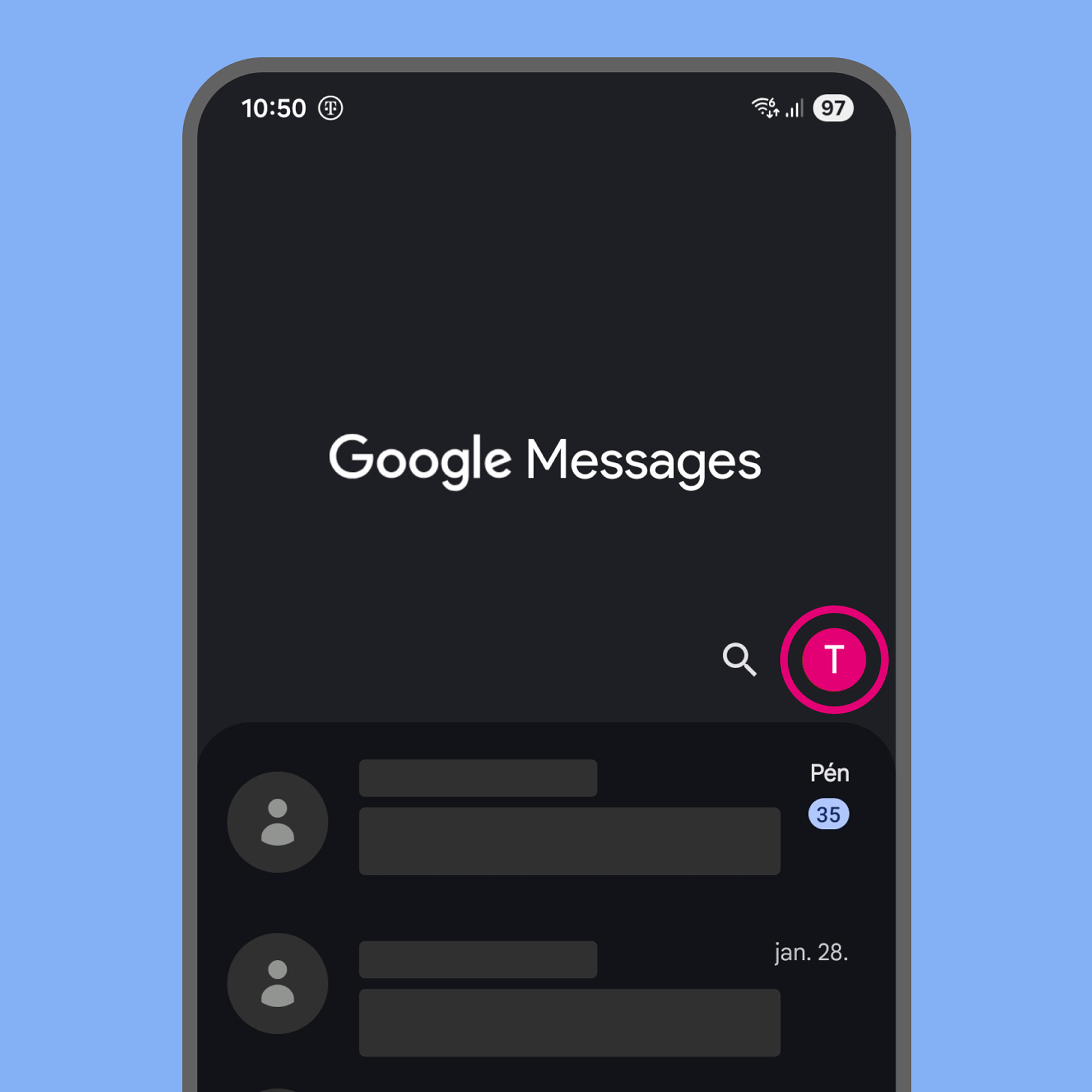 A beállítások eléréséhez koppints a profil ikonra az üzenetek felett.