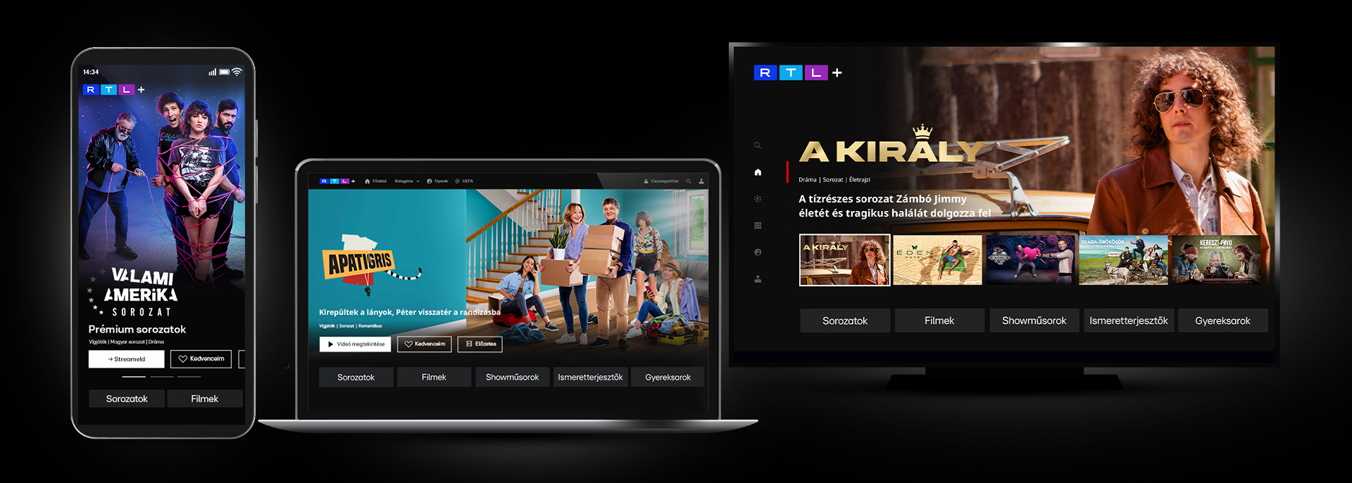Az RTL+ egy streaming szolgáltatás, amivel hozzáférsz az RTL Magyarország saját gyártású sorozataihoz, showműsoraihoz, valamint nemzetközi filmekhez és sorozatokhoz.